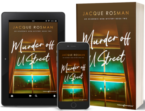 Murder Off U Street is the second book in Jacque Rosman's Academic Mom Mystery series and features Professor Cara Knight of the Virginia University Department of Social Work. Cara is surprised when one of her star graduate students gets into trouble at her internship with the Metro D.C. Police Victim Services unit. But when she steps in to help facilitate the situation, she finds there’s a whole lot more at stake than a student’s grade.