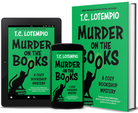 Murder on the Books is the first book in veteran author Toni (T.C.) LoTempio’s excellent new Cozy Bookstore Mystery series and combines many of my favorite cozy mystery themes: a bakery, bookstore, a writer as the amateur sleuth, an engaging store cat, and an initially grumpy potential love interest. When thriller author Charley James, known as CJ Barrett to her leagues of fans, returns to her hometown of Austin, Pennsylvania, she’s in dire need of a vacation from her fictional world of intrigue, mystery, and murder. But when she finds out her best friend since childhood has been left high and dry by her new business partner right before the grand opening of her own bakery, she gladly steps into the void to take up the reins of the partner’s bookstore, which shares the bakery’s space (and the expenses). However, before much progress is made toward getting the bookstore ready, Charley discovers the body of Zane’s former partner stuffed into the trunk in the bookstore basement; she hadn’t left town as her hasty note had indicated. But when the police start eyeing Zane as their best suspect, Charley must put her detective mindset back in place and find the real murderer and clear her friend’s name.
