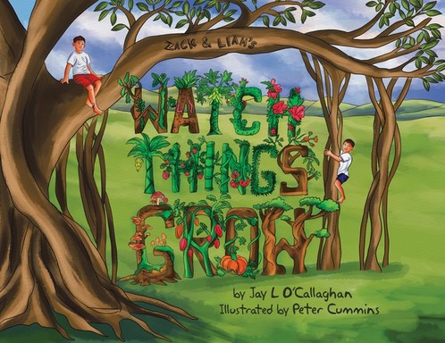 Watch Things Grow is the first book in author Jay L. O’Callaghan’s planned children’s picture book series, featuring brothers Zack and Liam and their parents as they learn to grow their own vegetables and fruits from seed to table. The bright illustrations are full of action, and the narrative emphasizes the benefits of healthy, organic produce, some varieties of which may be new to young readers outside of Australia.
